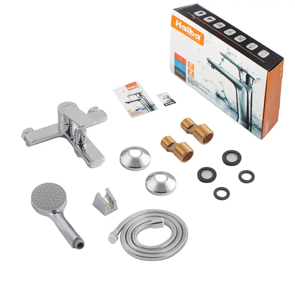 Шланг 150 см, ручна лійка, тримач для лійки, ексцентрики, чашки, гумові прокладки, керівництво по експлуатації та гарантійний талон