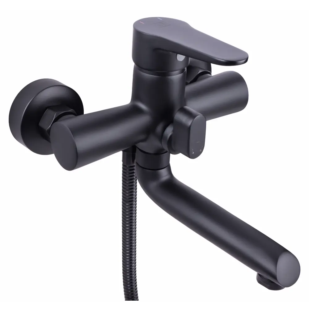 Змішувач для ванни Lidz (BLA) 14 43 006-1 з коротким поворотним виливом виготовлено з цинку, укомплектовано кронштейном для лійки, душовим шлангом і лійкою. Для включення потоку води передбачений важіль, для перемикання на душ - дивертор. Настінний монтаж здійснюється за допомогою кріпильних деталей, які входять в комплект. Декоративні розетки приховають всі погрішності установки на обробці ванної кімнати.