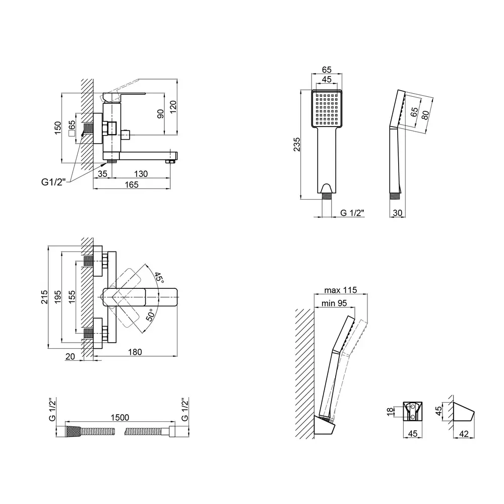 Змішувач, Лійка для ручного душу, Душовий шланг, Кронштейн для ручного душу, Кріплення