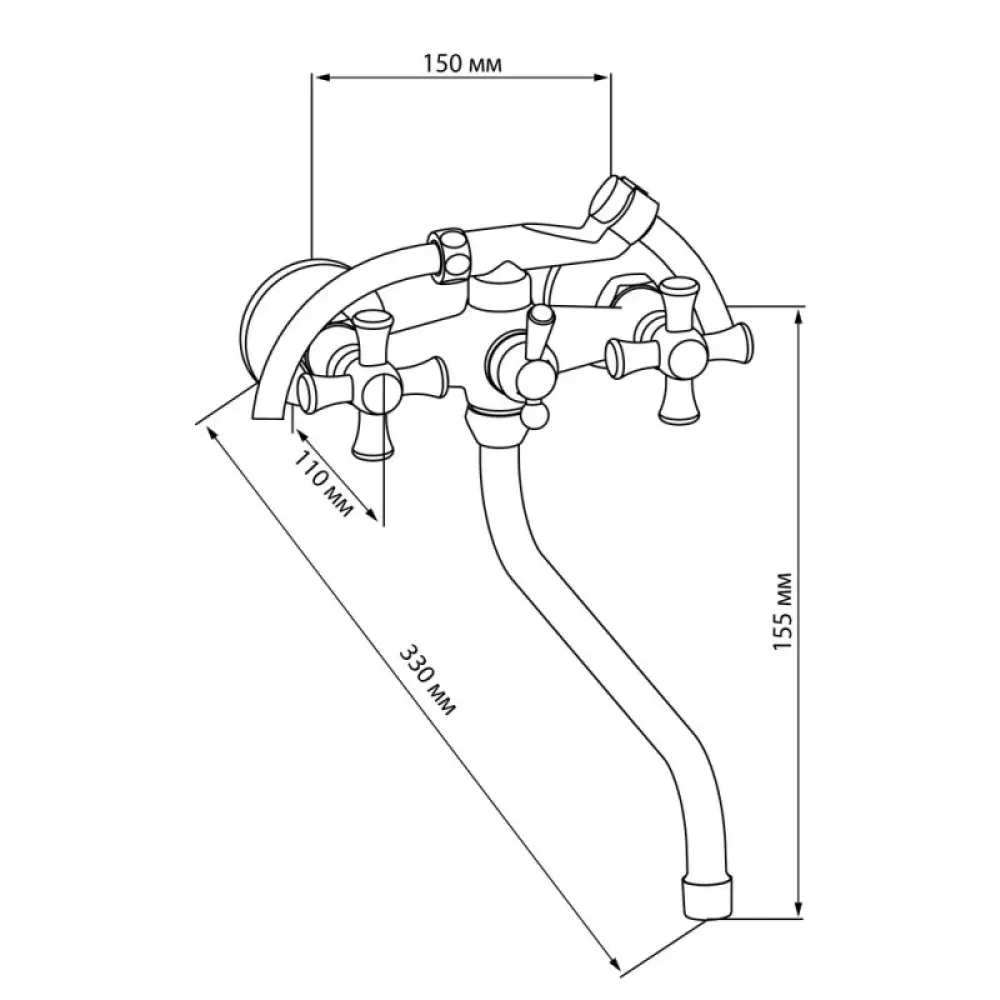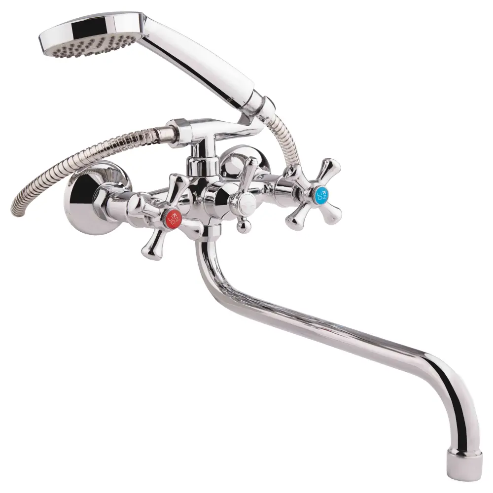 Змішувач для ванни Lidz (CRM) 30 21 143 01 з поворотним виливом виготовлений з силуміну, укомплектований шланговим підключенням, душовим шлангом і лійкою. Для вмикання потоку води передбачено два вентиля з нанесеними маркуванням Х+Г води і фірмовими логотипами виробника, для перемикання на душ - поворотний дивертор-важіль. Настінний монтаж здійснюється за допомогою кріпильних деталей, які комплектуються разом зі змішувачем. Круглі розетки приховають всі погрішності установки на обробці ванної.