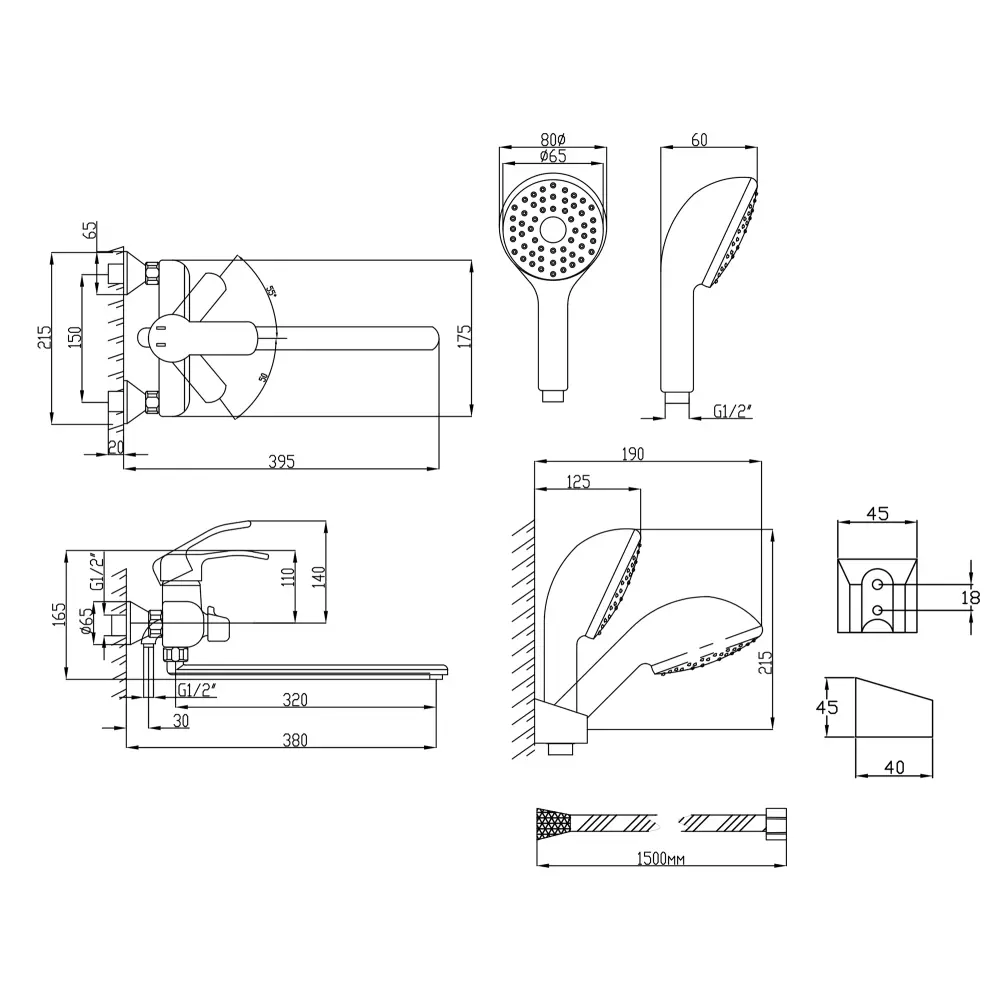Змішувач, Лійка для ручного душу, Душовий шланг, Тримач для душу, Кріплення