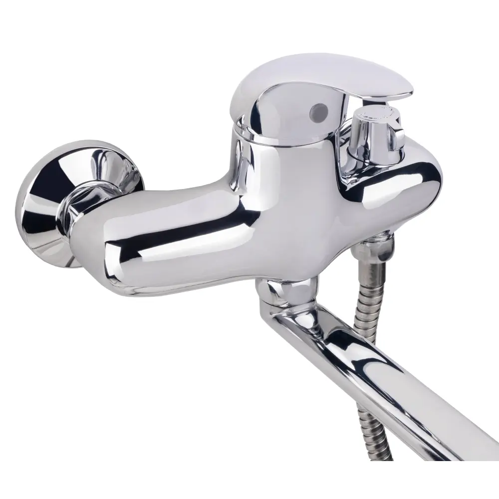 Змішувач для ванни Lidz (CRM) 43 79 001 New з довгим поворотним виливом виготовлено з цинку, укомплектовано кронштейном для ручного душа, душових шлангом і лійкою. Завдяки хромованому покриттю має міцну поверхню і привабливий зовнішній вигляд. Декоративні розетки приховають похибки установки на оздобленні кімнати. Напір води і її температура регулюються поворотом важеля в необхідне положення. Перемикання ванна/душ здійснюється за допомогою дивертора.
