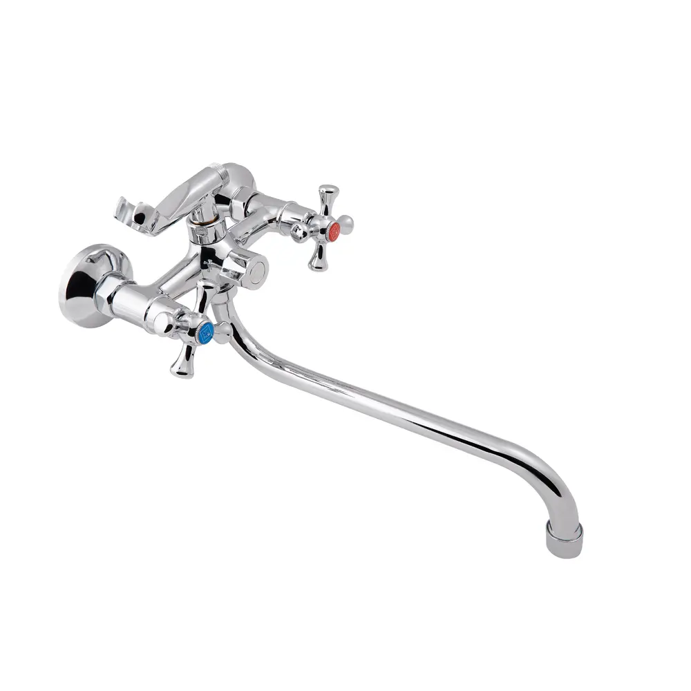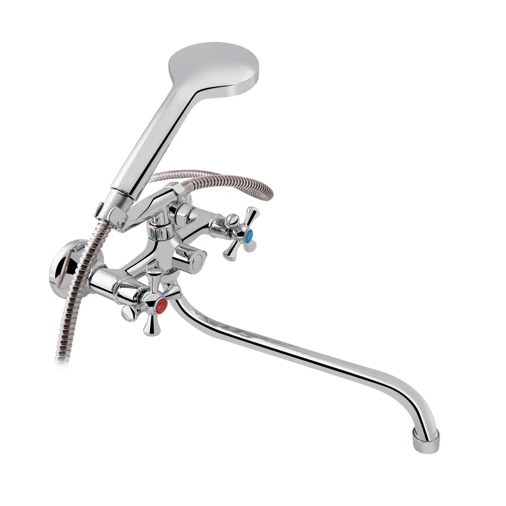 Змішувач для ванни Lidz (CRM) 75 21 140S New з довгим поворотним виливом виконаний з інтегрованим шланговим під‘єднанням, укомплектований душовим шлангом і лійкою. Для вмикання потоку води передбачено два вентиля з нанесеними маркуванням Х+Г води і фірмовими логотипами виробника, для перемикання на душ - поворотний дивертор. Настінний монтаж здійснюється за допомогою кріпильних деталей, які комплектуються разом зі змішувачем. Круглі розетки приховають сліди установки на обробці.