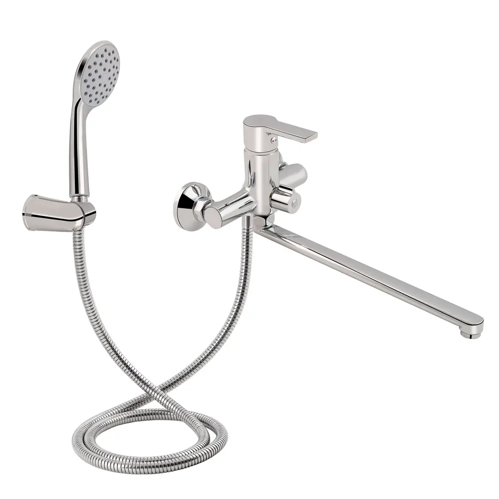 Змішувач для ванни Lidz (CRM) J-Lex 40 005-1 з поворотним виливом виготовлено з латуні, укомплектовано кронштейном для ручного душа, душових шлангом і лійкою. Завдяки хромованому покриттю має міцну поверхню і привабливий зовнішній вигляд. Декоративні розетки приховають похибки установки на оздобленні кімнати. Напір води і її температура регулюються поворотом важеля в необхідне положення. Перемикання ванна/душ здійснюється за допомогою дивертора.