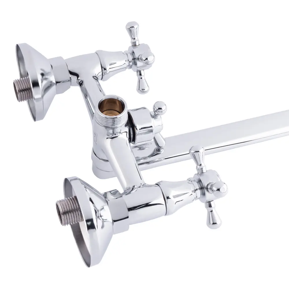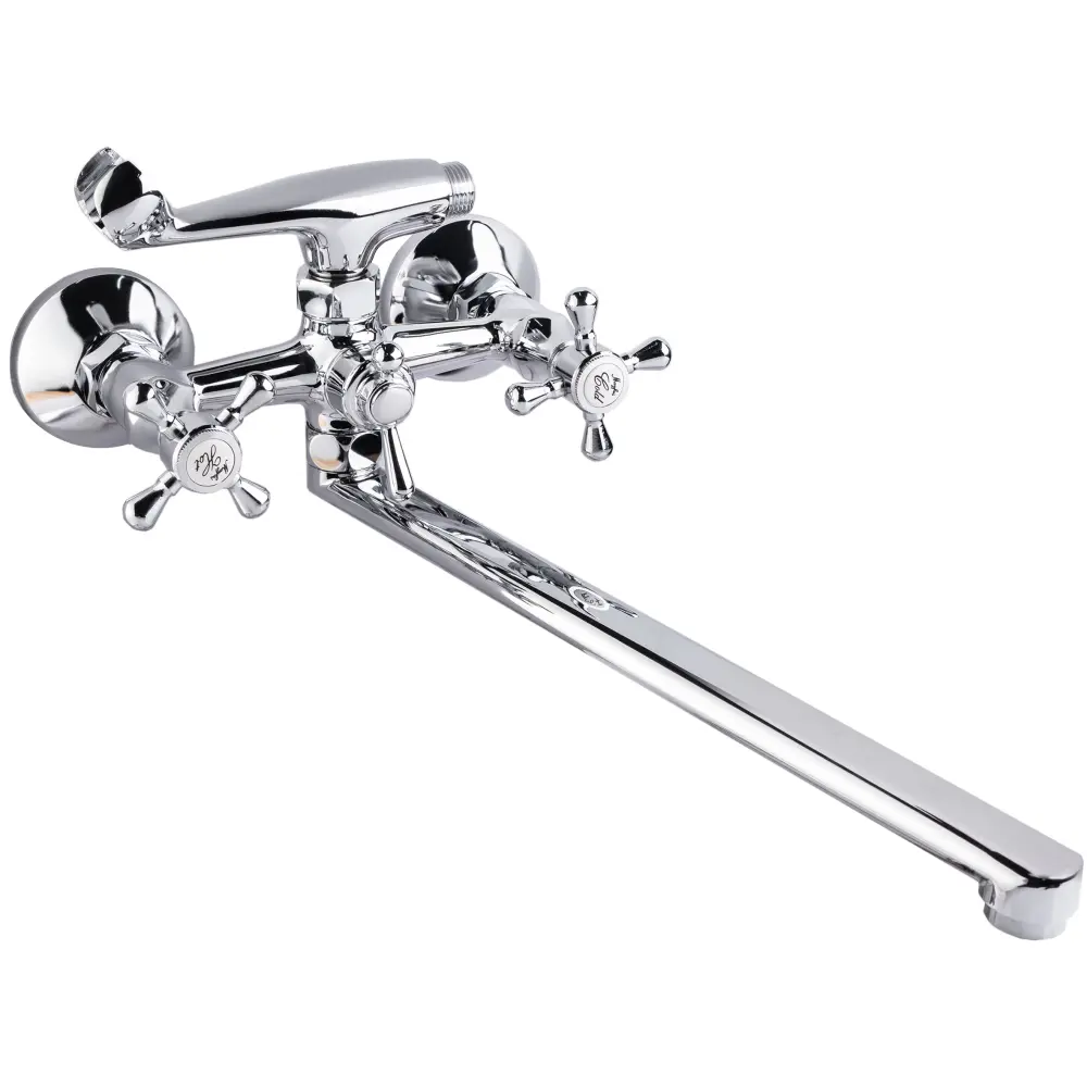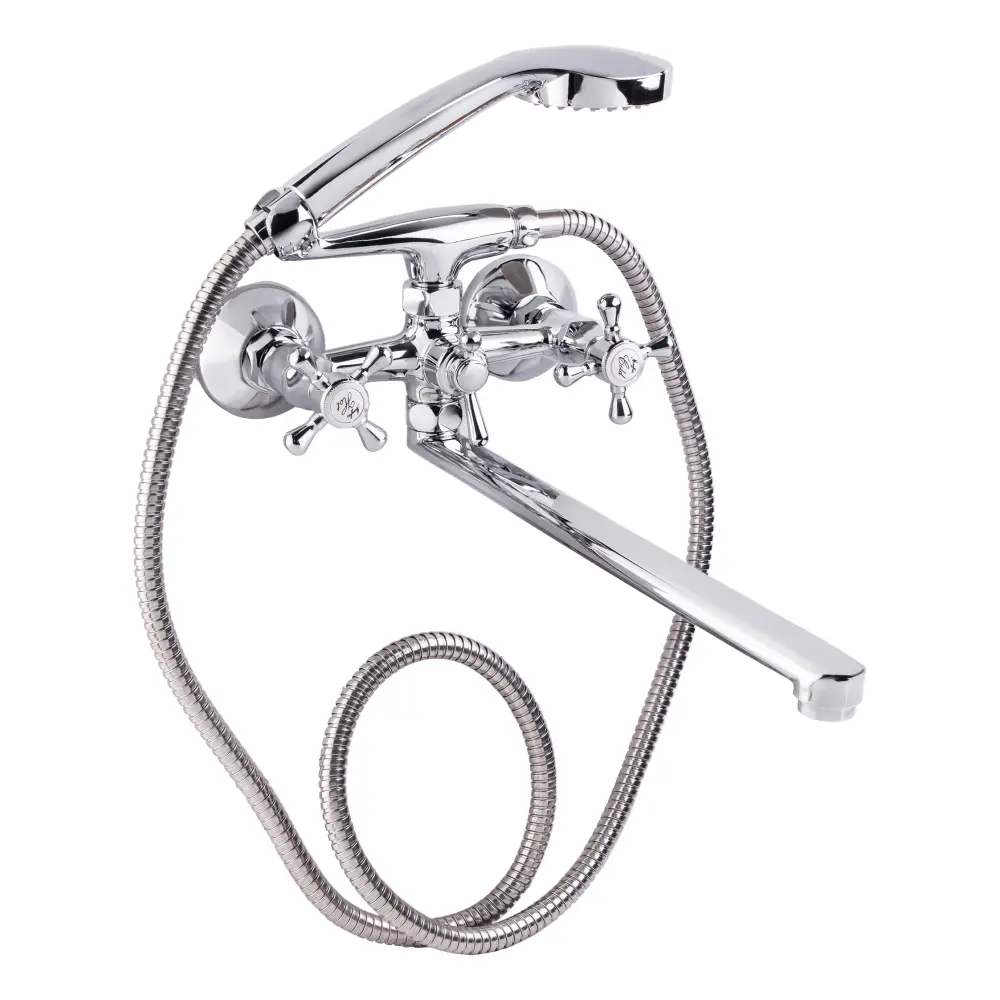 Смеситель для ванны Lidz (CRM) Mayfair 16 143K виконано з глянцевою блискучою поверхнею. Він монтується на стіну над ванною. Круглі декоративні розетки приховають похибки установки на обробці кімнати. Напір води і її температура регулюються поворотом зручних ручок в необхідне положення. Для зручності на нього нанесено маркування Х + Г води. Перемикання ванна/душ здійснюється поворотом дивертора.