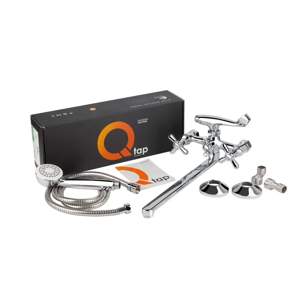Змішувач для ванни Qtap Dominox CRM 143 з інтегрованим шланговим під‘єднанням виготовлений з міцної та зносостійкої латуні з рівномірним хромованим покриттям, завдяки якому виріб має привабливий зовнішній вигляд та більш стійкий до механічних пошкоджень. У комплекті є лійка та душовий шланг. Подача води здійснюється за допомогою зручних вентилів з маркуванням холодної та гарячої води, а перемикання на душовий режим - поворотним дивертором.