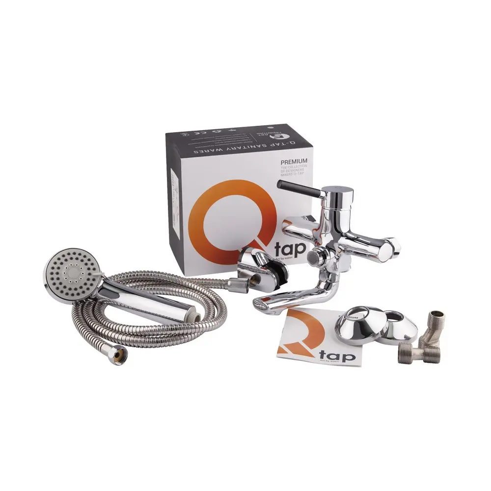 Змішувач для ванни Qtap Inspai CRM 005BN виготовлений з міцної та зносостійкої латуні з рівномірним хромованим покриттям, завдяки якому виріб має привабливий зовнішній вигляд та більш стійкий до механічних пошкоджень. У комплекті є лійка, тримач для душу та душовий шланг. Подача води здійснюється за допомогою зручного важеля, а перемикання на душовий режим - натискним дивертором.