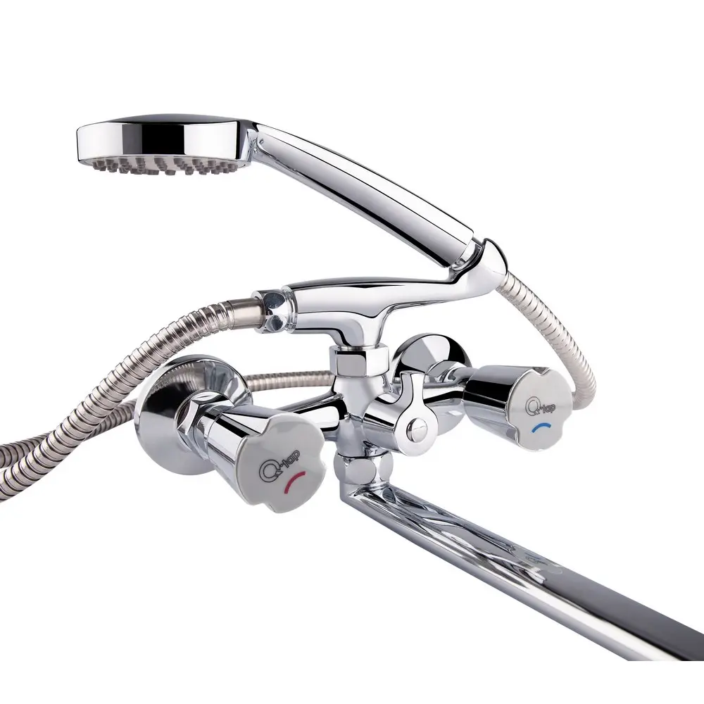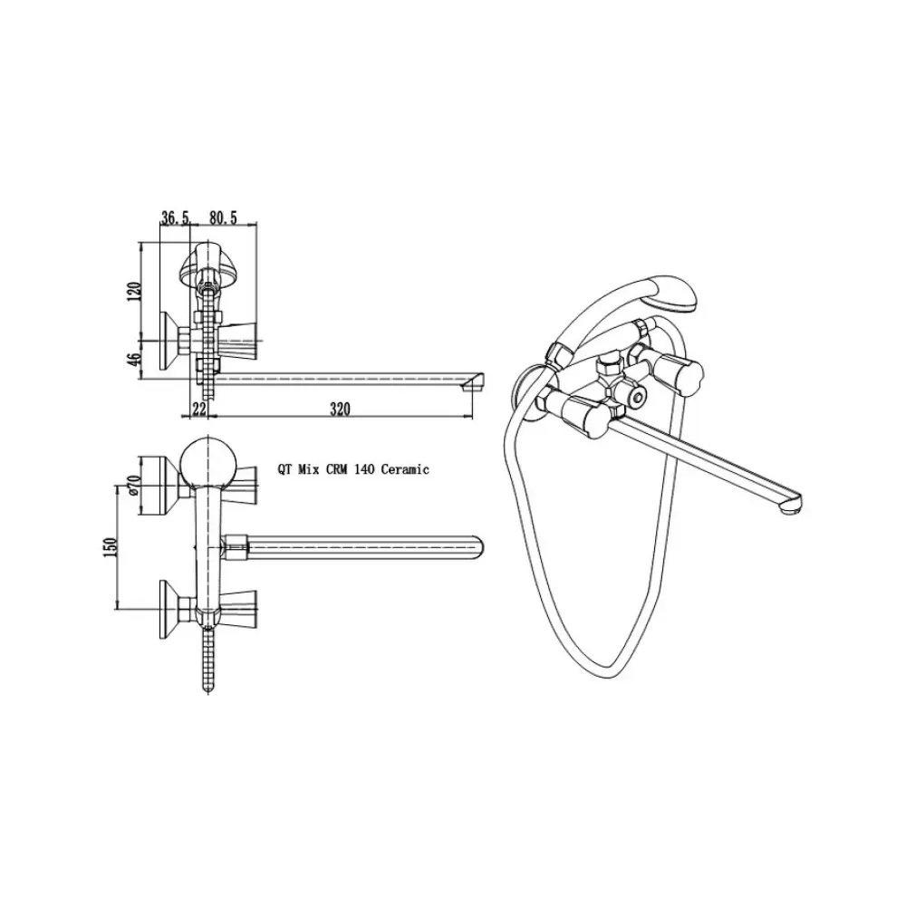 Змішувач для ванни Qtap Mix CRM 140 з інтегрованим шланговим під‘єднанням виготовлений з міцної та зносостійкої латуні з рівномірним хромованим покриттям золотого кольору, завдяки якому виріб має привабливий зовнішній вигляд й більш стійкий до механічних пошкоджень. У комплекті є лійка та душовий шланг. Подача води здійснюється за допомогою зручних вентилів з маркуванням холодної та гарячої води, а перемикання на душовий режим - поворотним дивертором.