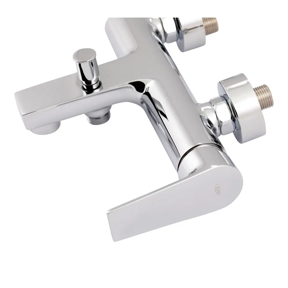 Змішувач для ванни Qtap Stenava 3045102DC виготовлено з міцної і зносостійкої латуні з рівномірним хромованим покриттям, завдяки якому виріб має привабливий зовнішній вигляд і стійкий до механічних пошкоджень. Подача води регулюється за допомогою зручного важеля, а перемикання в душовий режим - дивертором. Декоративні накладки приховають всі похибки монтажу.