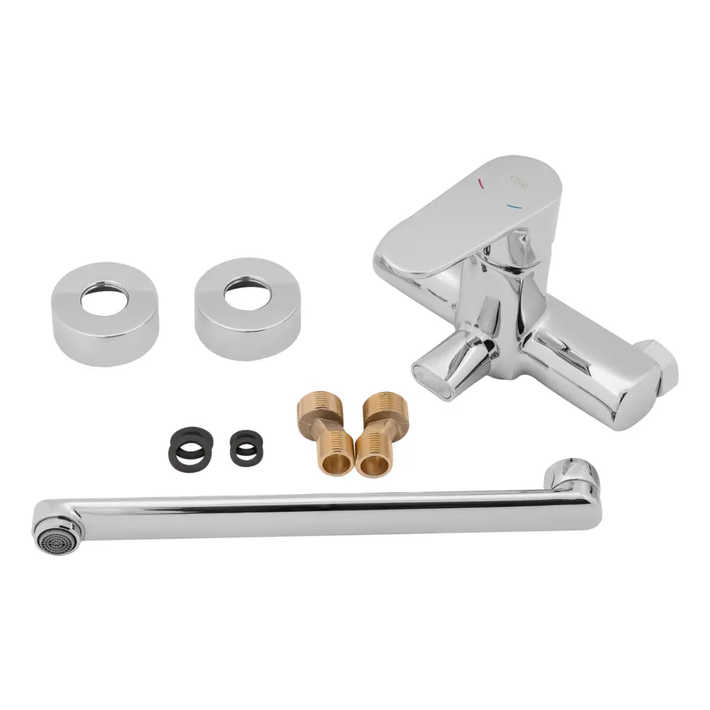 Змішувач для ванни з довгим виливом Qtap Vranov 3218104GC виготовлено з міцної та зносостійкої латуні з рівномірним хромованим покриттям, завдяки якому виріб має привабливий зовнішній вигляд та більш стійкий до механічних пошкоджень. Подача води здійснюється за допомогою зручного важеля, а перемикання на душовий режим - дивертором. Декоративні розетки допоможуть приховати похибки монтажу, що виникають при встановленні.