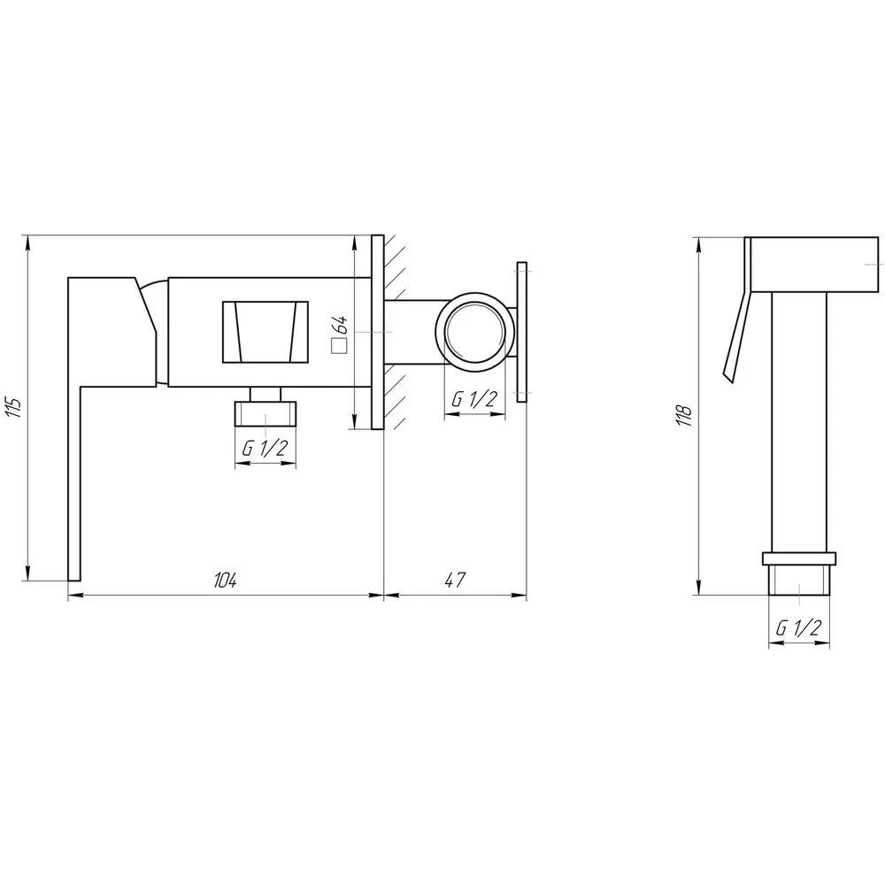 Змішувач гігієнічний TOPAZ ODISS-TO 18106-H52, моноблок, вбудований