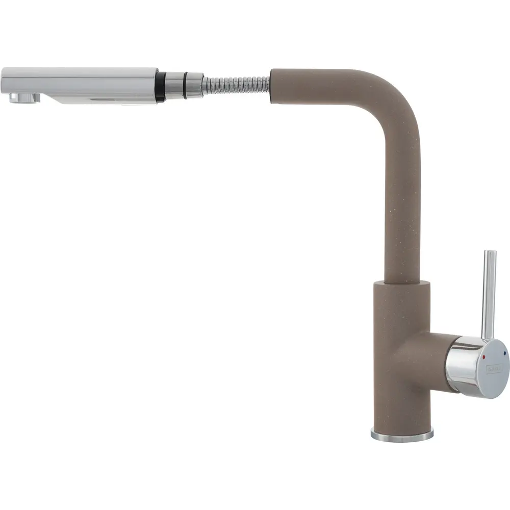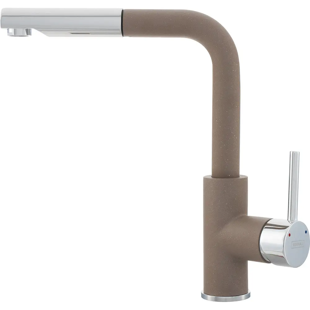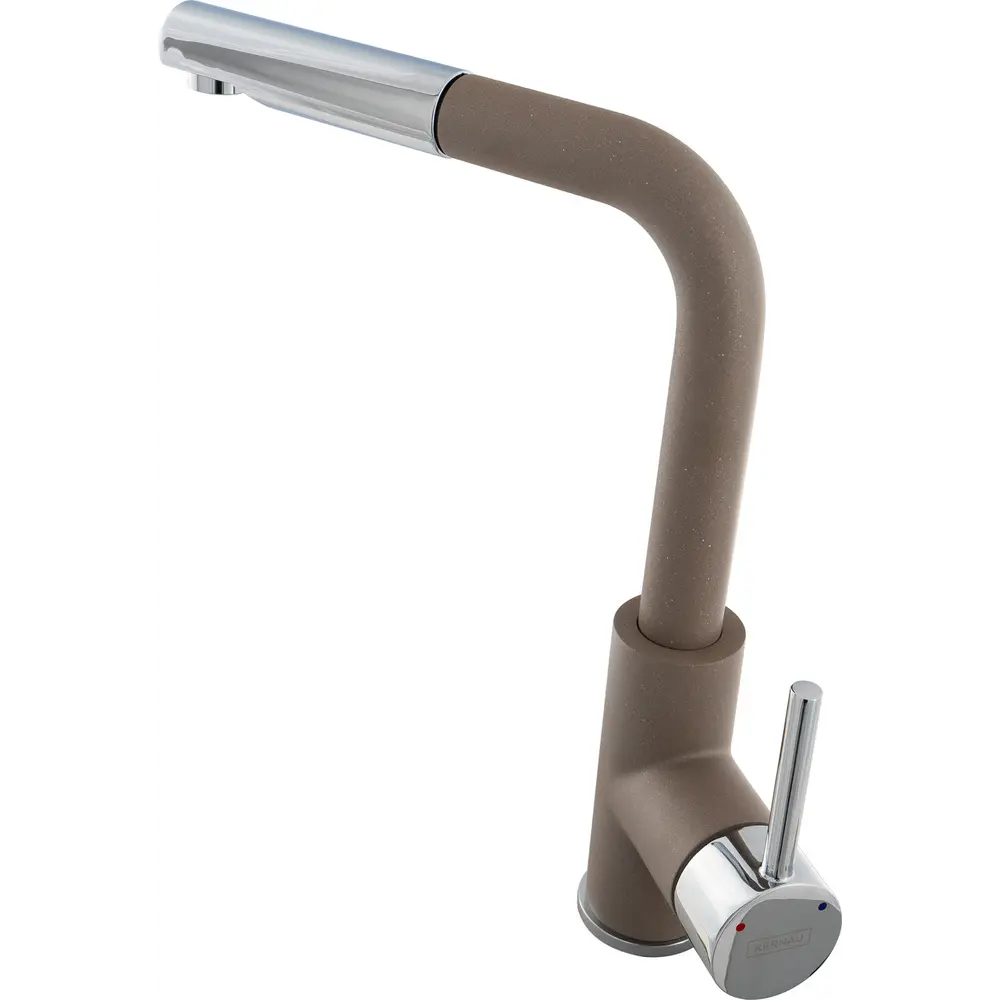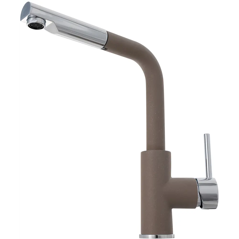 Змішувач KWT 06 PO - це відмінний змішувач для гранітних мийок. Аератор, яким він був обладнаний, засмоктуючи повітря змішує його з водою, збільшуючи її обсяг, що, в свою чергу, зменшує споживання води до 50%. Крім того, аератор пом'якшує воду, запобігаючи появі плям на посуді і мийці. Змішувач має поворотний висувною носик. Висувний носик дозволяє ретельно вимити посуд або продукти харчування, які стоять на кухонній мийці. У змішувачі встановлена система видалення накипу. Керамічний картридж дозволяє точно регулювати витрату води і її температуру. Надійний, довговічний і оригінальний змішувач, безумовно, принесе задоволення своїм користувачам. P>