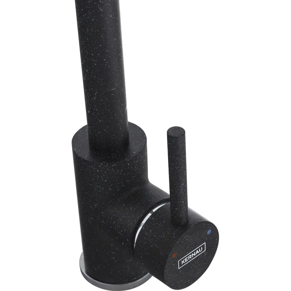 Змішувач KERNAU KWT 07A призначений для гранітних мийок. Він оснащений поворотним носиком і аератором, який дозволяє економити до 50% води. Аератор також пом'якшує воду, і це запобігає появі плям від відкладень накипу на стінках мийки або посуду. Керамічний картридж, присутній в крані, дозволяє точно регулювати водний потік і його температуру. Цей чудовий кран вдало приверне увагу всіх користувачів і додасть кухні неповторний і елегантний стиль. Крім того, його легко розібрати і встановити завдяки системі кріплення Easy Fix. P>