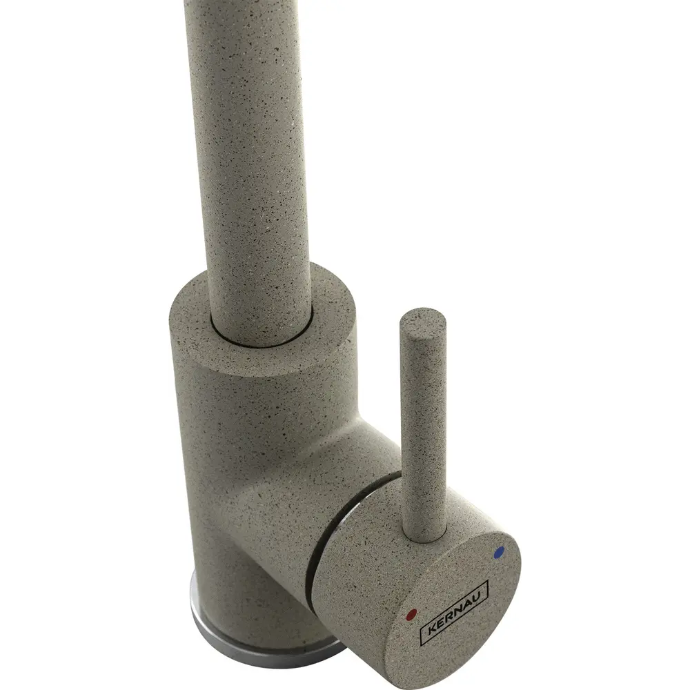 Змішувач KERNAU KWT 07A призначений для гранітних мийок. Він оснащений поворотним носиком і аератором, який дозволяє економити до 50% води. Аератор також пом'якшує воду, і це запобігає появі плям від відкладень накипу на стінках мийки або посуду. Керамічний картридж, присутній в крані, дозволяє точно регулювати водний потік і його температуру. Цей чудовий кран вдало приверне увагу всіх користувачів і додасть кухні неповторний і елегантний стиль. Крім того, його легко розібрати і встановити завдяки системі кріплення Easy Fix. P>