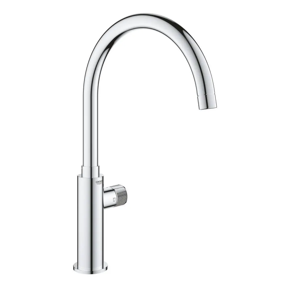 Кран для кухні Grohe Blue Pure Mono 31724000 виготовлений з високоякісної латуні з покриттям блискучого кольору, поворотний вилив, з виносом 22.4 см. Кран оснащується круглим вентилем для подачі відфільтрованої води.