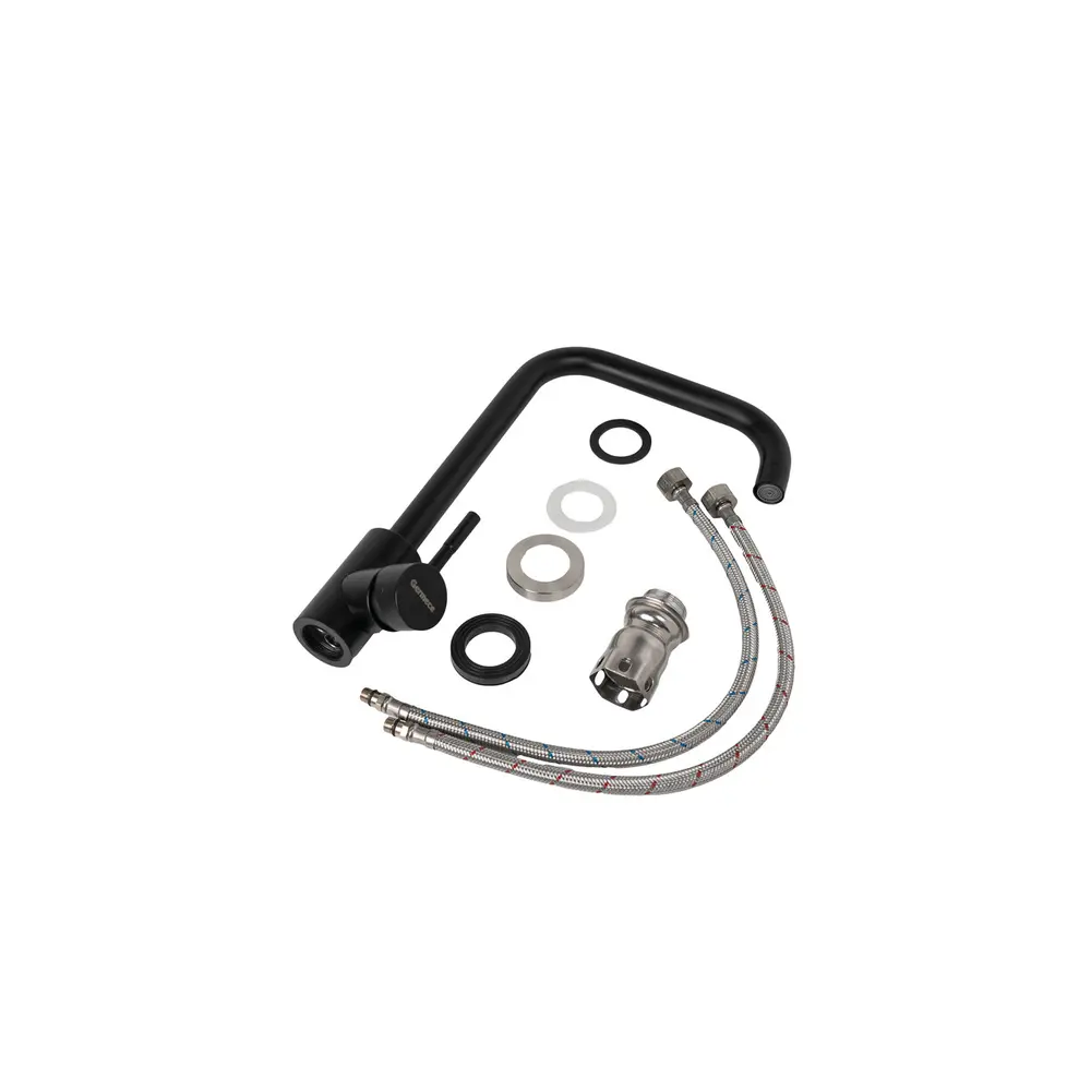 Бренд: GERMECE Тип смесителя: Смеситель кухонный Тип выброса : поворотный Материал ++: Нержавеющая сталь SUS 304 Высота смесителя, мм: 330 Картридж: 35 Крепления: гайка Длина гибкой подводки, мм: 450 Шт. в коробке: 10 шт Шт. в упаковке: 1 шт Высота от основания до носике, мм: 250,5 Цвет излива: Черный Вид смесителя: Джойстик Комплектация: Смеситель, крепления, гибкая подводка Подключение: к водопроводу Вид монтажа: Внешний Гарантия: 1 год