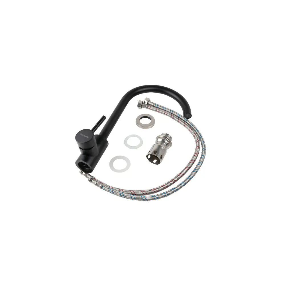 Бренд: GERMECE Тип смесителя: Смеситель кухонный Тип выброса : поворотный Материал ++: Нержавеющая сталь SUS 304 Высота смесителя, мм: 340,5 Картридж: 35 Крепления: гайка Длина гибкой подводки, мм: 450 Шт. в коробке: 10 шт Шт. в упаковке: 1 шт Высота от основания до носике, мм: 250,5 Цвет излива: Черный Вид смесителя: Джойстик Комплектация: Смеситель, крепления, гибкая подводка Подключение: к водопроводу Вид монтажа: Внешний Гарантия: 1 год