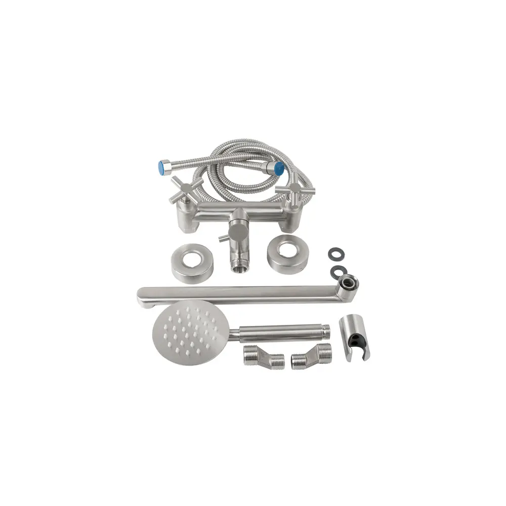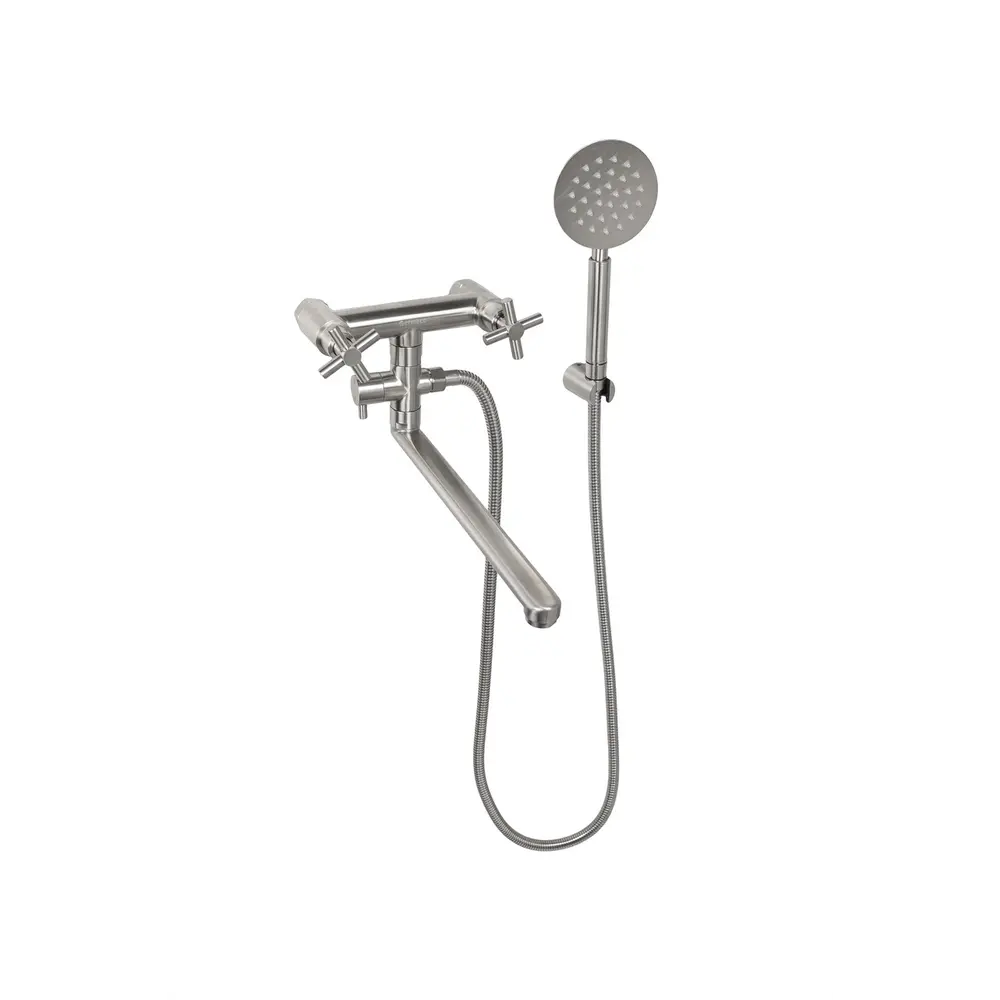 Вес (брутто): 2,150 Бренд: GERMECE Длина излива, мм: 300 Тип смесителя: Смеситель для ванной Тип выброса : поворотный Материал ++: Нержавеющая сталь SUS 304 Картридж: Кран-буксы Крепления: гайки Длина гибкой подводки, мм: Без гибкой подводки в комплекте Шт. в коробке: 12 шт Шт. в упаковке: 1 шт Диаметр маленькой лейки: 100 * 100 Вид смесителя: Двухвентильный Комплектация: Смеситель, гусь, лейка, крепления для воронки, шланг, эксцентрики Длина шланга, мм: 1,500 Подключение: к водопроводу Назначение смесителя: для ванны Вид монтажа: Настенный Цвет смесителя: Нержавеющая сталь Гарантия: 1 год