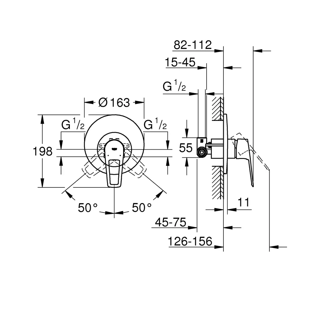 Зовнішня частина. Металевий важіль. Внутрішня частина. Керамічний картридж GROHE Longlife 46 мм