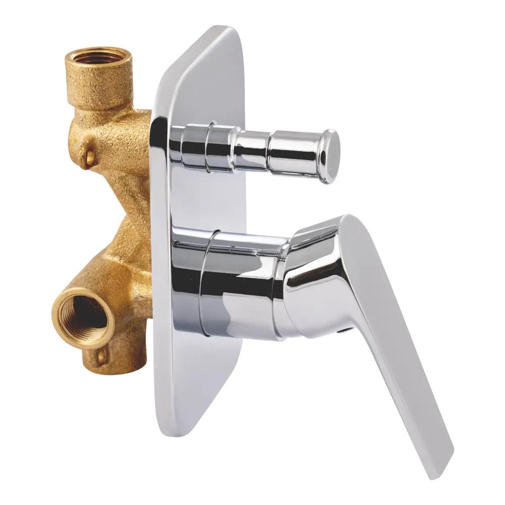 Змішувач прихованого монтажу для душу Qtap Stenava 6245102DC для двох споживачів - це відмінне рішення для сучасної ванної кімнати. Він додасть вишуканий вигляд інтер‘єру ванної, а міцна хромована поверхня збереже зовнішній вигляд змішувача на довгі роки. Функціональна частина виготовлена з високоякісної латуні, стійкої до корозії. Управління потоком води здійснюється за допомогою зручного важеля, а перемикання між споживачами за допомогою дивертора.