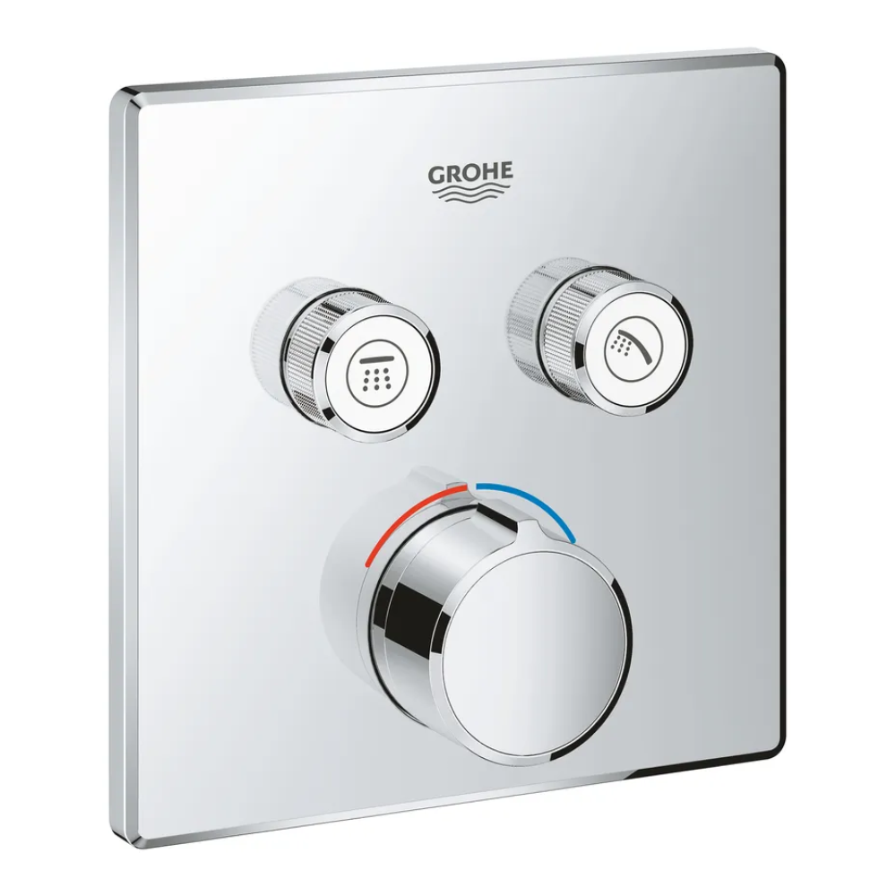 на 2 споживача. Комплект верхньої монтажної частини для GROHE Rapido SmartBox 35600000. Вбудовані зворотні клапани та брудоуловлювальні фільтри. Можливість одночасного включення кількох точок водовідведення. Розподіл витрати: вихід B = 24 л/ми