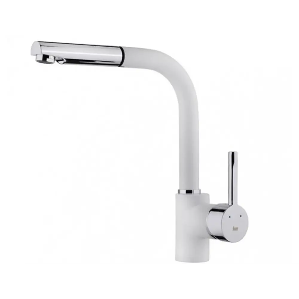Врiзний кухонний змішувач з одним важелем Teka ARK 938 W (White) (23938120W) білий / хром з поворотним виливом та висувним душем, з важелем збоку і аератом із захистом від накипу.