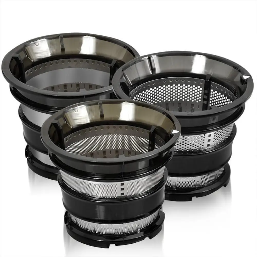 Три сита, входящие в комплект, позволят Вам приготовить разный сок: чистый и прозрачный (мелкое сито), густой мусс (пюре-сито) или вкуснейший ледяной десерт (сорбетовое сито). Кроме того, контейнер для сока оснащен съемной фильтрующей сеткой. Надень ее, если хочешь получить еще более чистый сок!