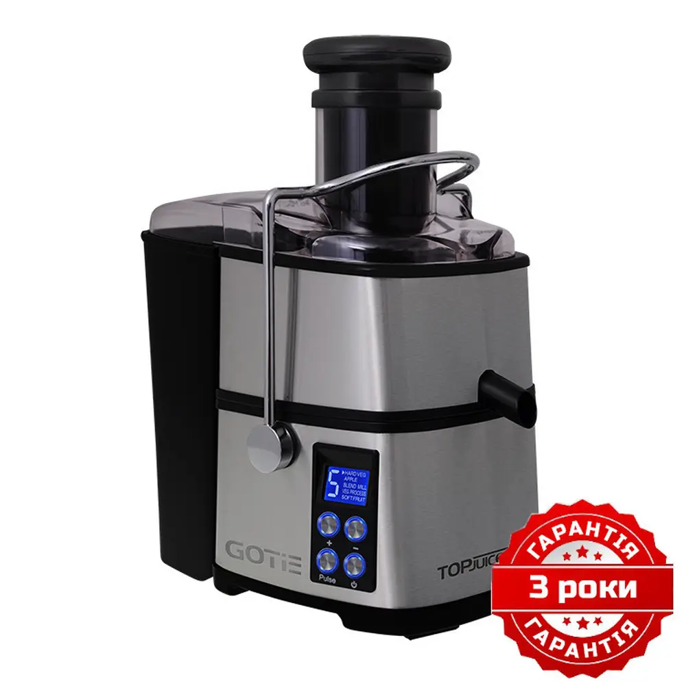 На сегодняшний день свежевыжатые соки в домашних условиях имеют большое преимущество над продукцией, которую продают в обычных магазинах. Соковыжималка GOTIE GSK-800 - это товар высочайшего класса линейки Platinum Collection. Характеризуется надежностью, высокой мощностью и элегантным внешним видом. Благодаря большому входному отверстию вам не нужно будет резать фрукты и овощи на небольшие кусочки, а мотор, достигающий мощности 800 Вт, без проблем выжмет из них максимальное количество сока. Пять скоростей работы позволят плавно приспособить мощность устройства к характеристикам продуктов, из которых вы выжимаете сок. Фильтрация происходит с помощью маленького сита из нержавеющей стали, которое эффективно задерживает лишние элементы и помогает получить чистый сок. Устройство "общается" с пользователем с помощью четкого ЖК-дисплея, что облегчает его использование. Практическая функция PULSE позволяет включать устройство на столько времени, сколько будет удерживаться кнопка, а благодаря функции плавного старта - использовать устройство будет удобнее. Безопасность использования гарантирует мотор с защитой от перенапряжения. А корпус из нержавеющей стали обеспечит надежность и красоту устройства.