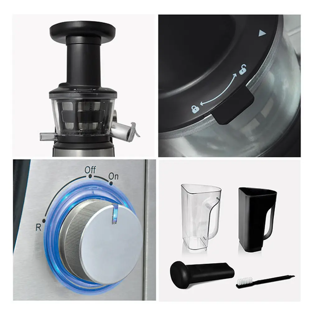 Повільна соковижималка GOTIE GSJ-510G - це вдосконалена версія популярної моделі GSJ-500, з мотором нового покоління потужністю 400 Вт і поліпшеним механізмом. Дизайн теж не залишився без змін: в результаті візуального підйому, на корпусі з нержавіючої сталі, розмістився новий елегантний вимикач з підсвічуванням і ергономічними пазами. GOTIE GSJ-510G - це професійне пристрій для вичавлювання соку з сучасним дизайном. У продажу є також сито для пюре, доступне в якості аксесуару під символом GSJ-А500, і приставка з широкими отворами для вичавлювання соку з яблук під символом GSJ-В500. P>