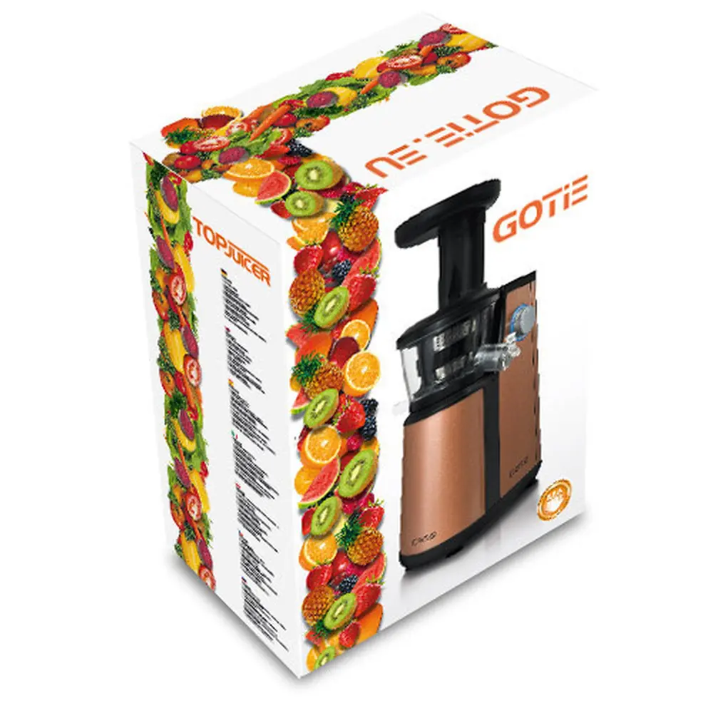 Ефективність низкоскоростной соковижималки значно вище традиційних соковижималок. А завдяки високій потужності, соковижималка GOTIE GSJ-510G може працювати з більшістю фруктів і овочів, які не втрачають своїх смакових якостей через повільне витіснення. P>