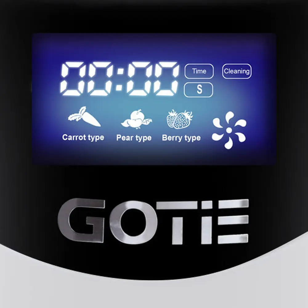 Низькошвидкісний соковижималка GOTIE GSJ-800A обладнаний мотором нового покоління з потужністю в 150 пн. Двигун управляється за допомогою спеціально розробленого процесора, який поступово збільшує або зменшує кількість обертів, що дає можливість автоматично вибрати швидкість роботи двигуна, яка буде максимально пристосована для продуктів різної консистенції, заради отримання більшої кількості соку. А міцний поворотний механізм гарантує надійність в будь-якій ситуації. P>