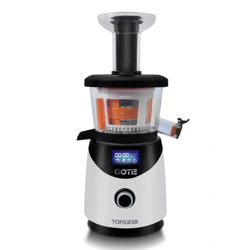 На сьогоднішній день свіжовичавлені соки в домашніх умовах мають велику перевагу над продукцією, яку продають в звичайних магазинах. Споживання свіжих соків має сприятливу дію на наш організм, адже вони містять велику кількість поживних речовин і легко і швидко засвоюються організмом. При віджиманні соку ефективними є низькошвидкісні соковижималки тому, що невелика кількість оборотів пристрою дає можливість вичавлювати майже всі види фруктів, овочів і трав. Повільна соковижималка GOTIE GSJ-800W - це революція на ринку: перший пристрій такого типу, яке обладнано РК-дисплеєм і регулюванням швидкості обертання. Чотири режиму роботи і двигун обладнаний повнопривідним механізмом нового покоління дозволять вичавлювати сік з максимальною ефективністю. За роботою двигуна стежить мікропроцесор, який поступово збільшую або зменшує обертів. Управління пристроєм здійснюється за допомогою однієї ергономічної ручки, виконаної за технологією soft-touch. У комплект соковижималки входять два сита: сито для соків і сито для пюре з великими отворами, доступне також як окремий додаток під символом GSJ-A400. P>