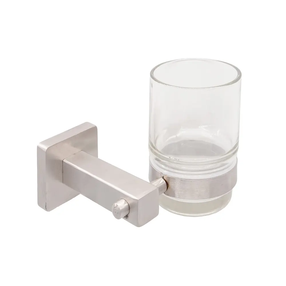 Стакан для зубних щіток Platinum 9801 - це елегантний аксесуар, який поєднує в собі тримач з нержавіючої сталі та стакан зі скла, що додає шарму та функціональності вашій ванній кімнаті.
