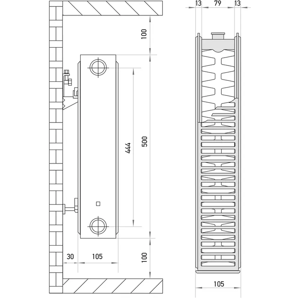 3 кронштейни для кріплення, повітровідвідник (кран Маєвського), заглушка, 6 шурупів з дюбелем, 6 пластикових фіксатора-прокладки