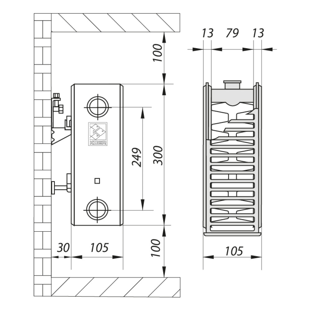 3 кронштейна для кріплення, відведення повітря (кран Маєвського), заглушка, 6 шурупів з дюбелем, 6 пластикових фіксатора-прокладки