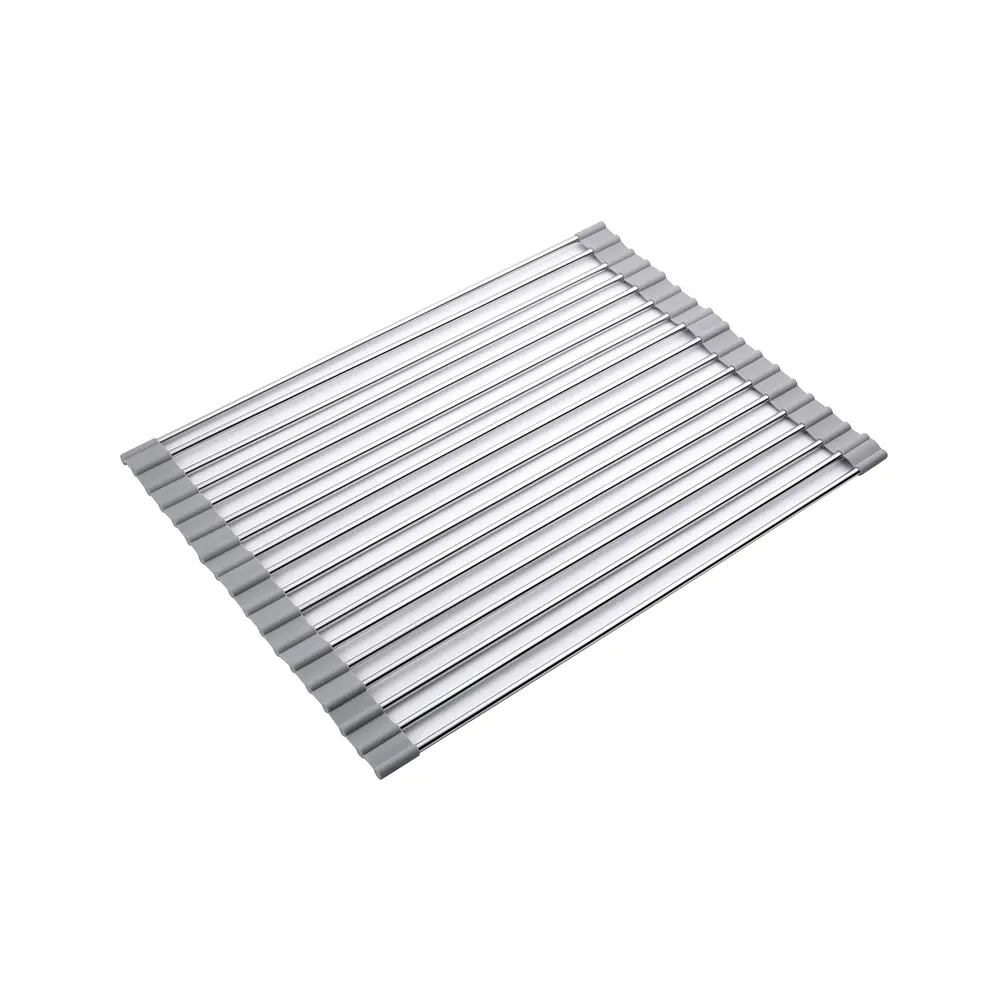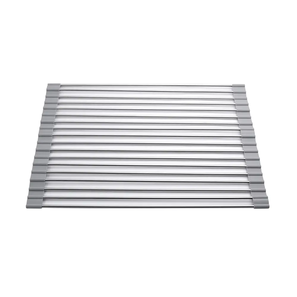 Сушилка-коврик для посуды Kroner KRP Matte-GRA4333-2 выполнена из пищевого силикона и нержавеющей стали. Сушка такого типа называется трофлексом, устанавливается поверх мойки или на столешницу. Важным преимуществом этого типа сушки является то, что она всегда под рукой и на нее можно складывать не только посуду, но, например, и мытые овощи, а так же возможно использовать для размещения горячих кастрюль и сковородок. Сушка скатывается в рулон и не занимает много места, а при необходимости быстро раскладывается для сушки посуды или овощей.