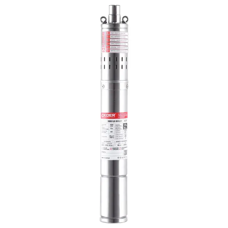 • Діаметр насоса – має відповідати діаметру свердловини (зазвичай 3" або 4").