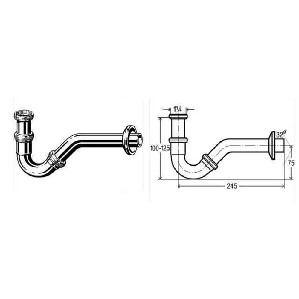 Сифон для бІде 1 1/4"х1 1/4" хром трубний VIEGA 103781