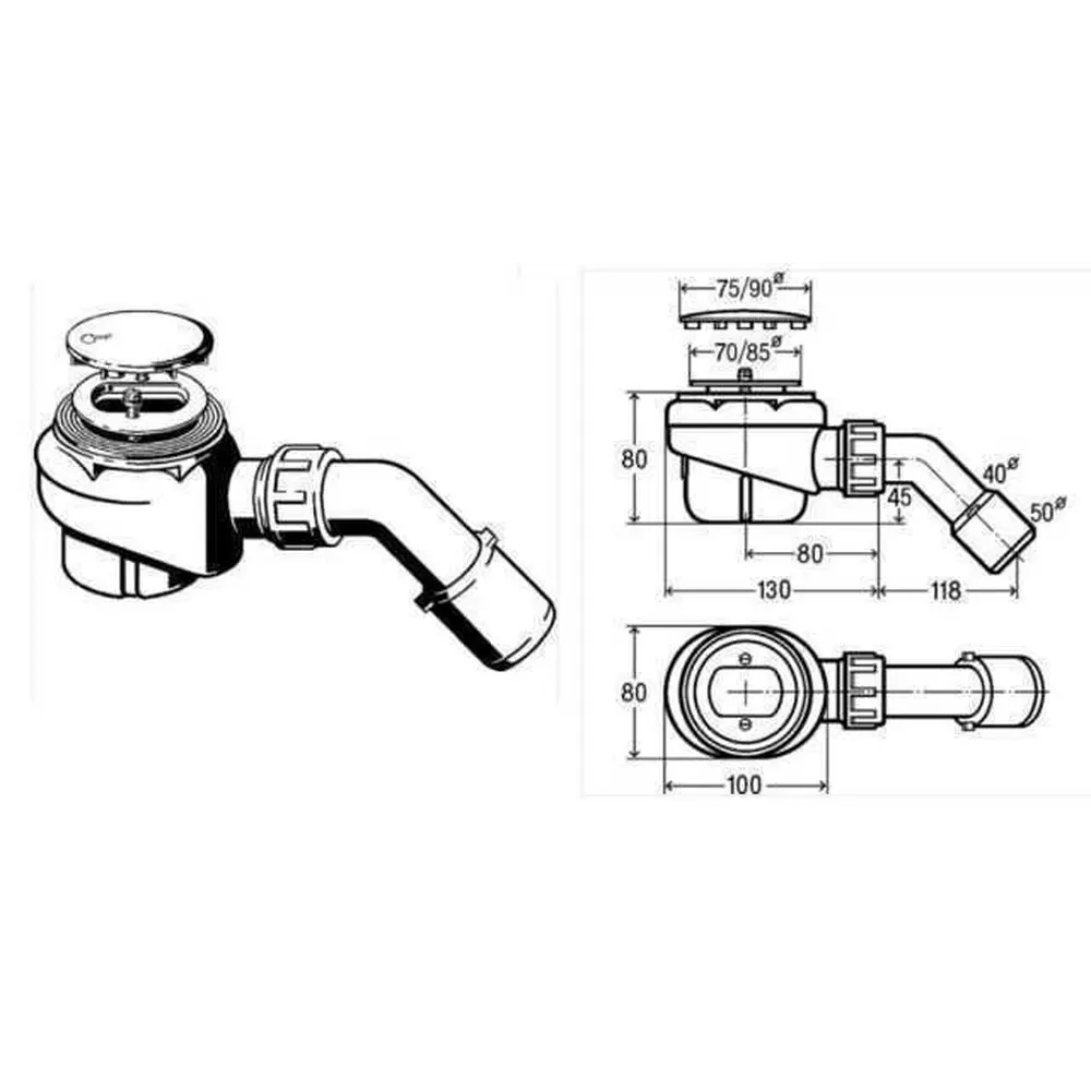 208615 Сифон пластиковий для душа ф85 з металевими гратами VIEGA