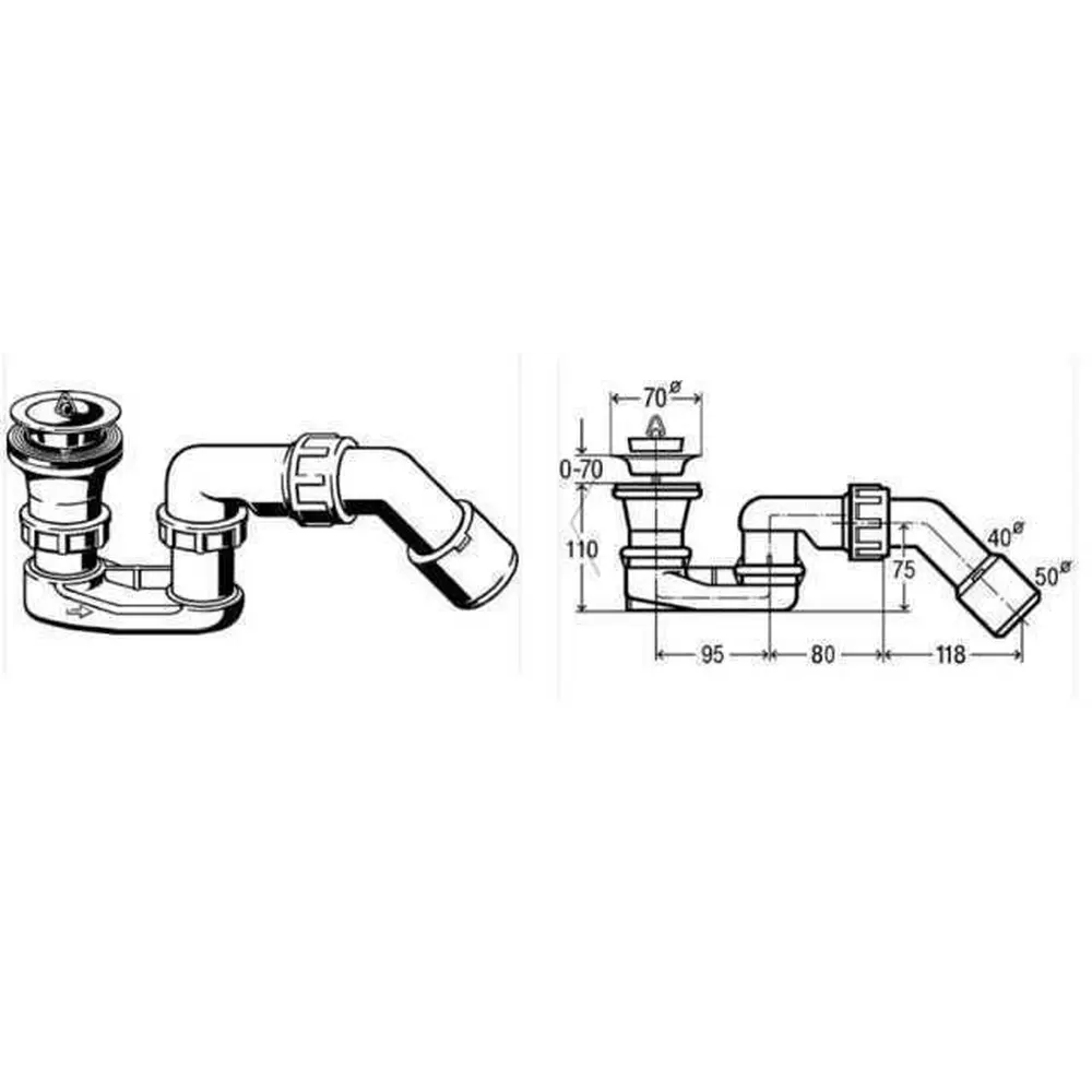 312138 Сифон пластиковий для душової кабіни з клапаном VIEGA