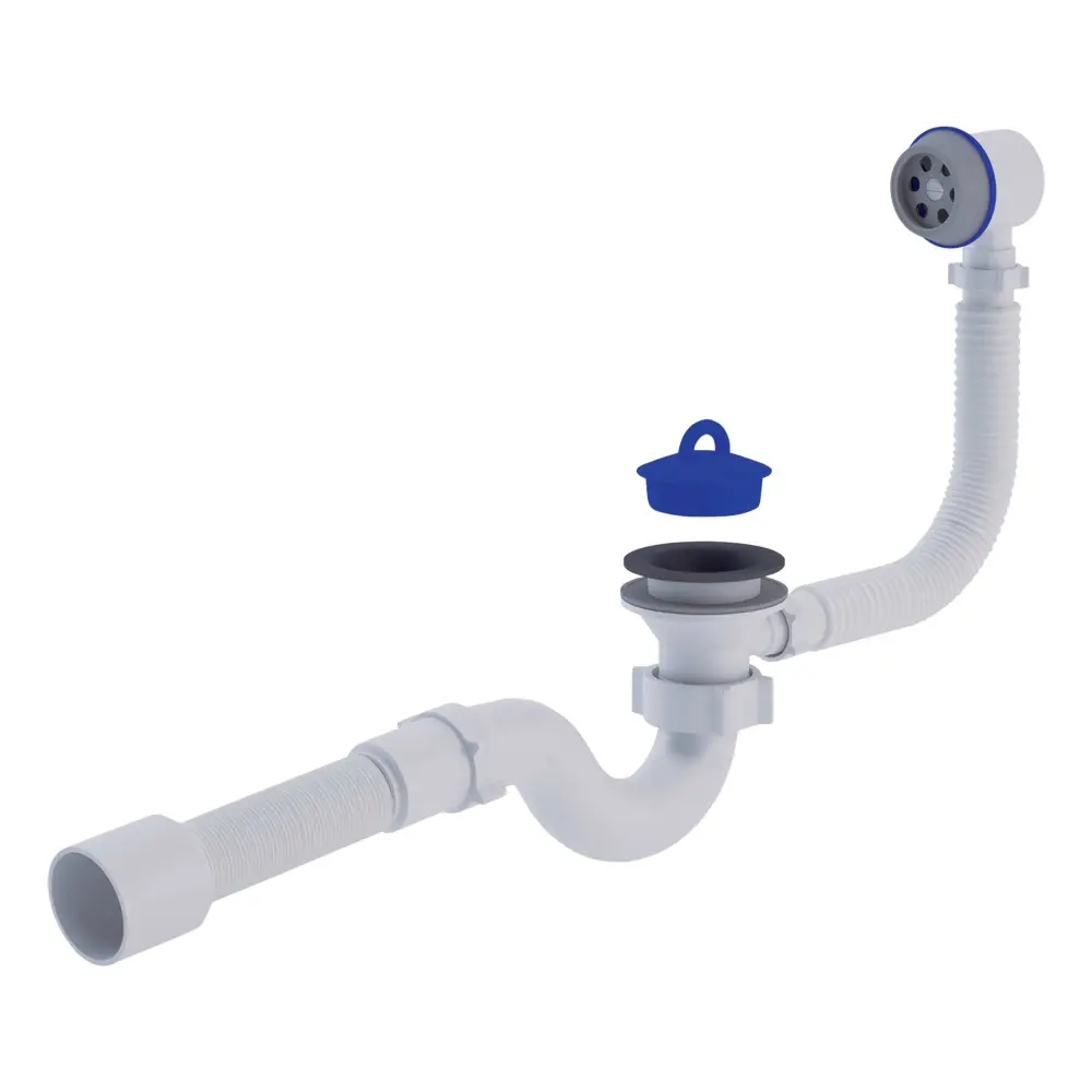 Сифон для ванни з переливом ANI PLAST EC255 виконаний з пластику в класичному білому кольорі, має гладку внутрішню поверхню, що не тільки робить його поцінним, але й перешкоджає накопиченню бруду на стінках. Виріб не зазнає впливу корозії, не дає каналізації засмічуватися. Мокрий гідрозакрив запобіжить проникненню неприємних запахів з каналізації в приміщення по трубах. У разі потреби наповнити раковину водою зливний отвір закривається вручну за допомогою пробки.