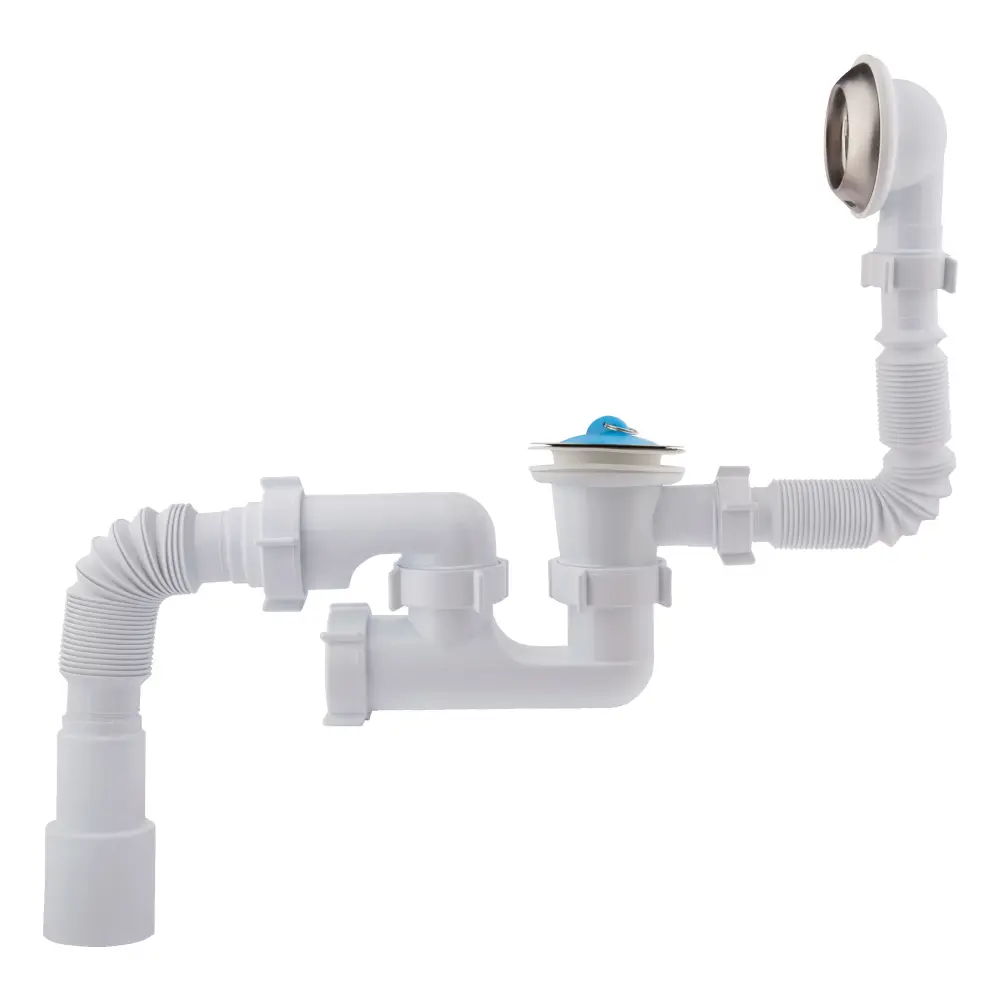 Сифон для ванни з переливом Krono Plast В0550 виконаний з пластику в класичному білому кольорі, має гладку внутрішню поверхню, що не тільки робить його поцінним, але й перешкоджає накопиченню бруду на стінках. Виріб не зазнає впливу корозії, не дає каналізації засмічуватися, а у разі потреби його очистити від осілих твердих частинок внизу коліна передбачено отвір-ревізію. Наявність гофрованих труб дає можливість змінювати їх довжину і кут під час установки.