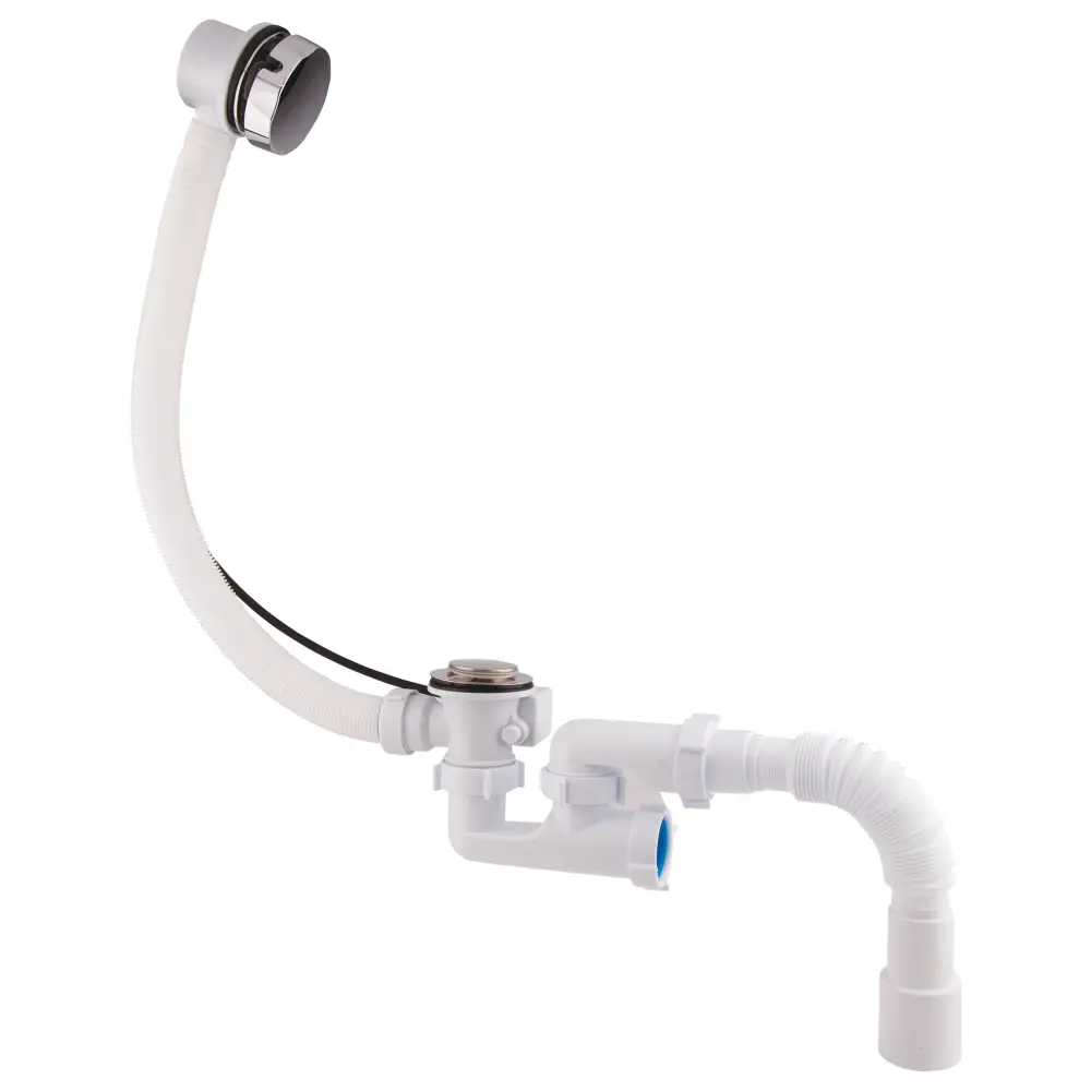 Сифон для ванни з переливом Krono Plast В0550ПА виконаний з пластику в класичному білому кольорі, має гладку внутрішню поверхню, що не тільки робить його поцінним, але й перешкоджає накопиченню бруду на стінках. Виріб не зазнає впливу корозії, не дає каналізації засмічуватися. Мокрий гідрозакрив запобіжить проникненню неприємних запахів з каналізації в приміщення по трубах, а, у разі потреби його очистити, внизу коліна передбачено отвір-ревізію.