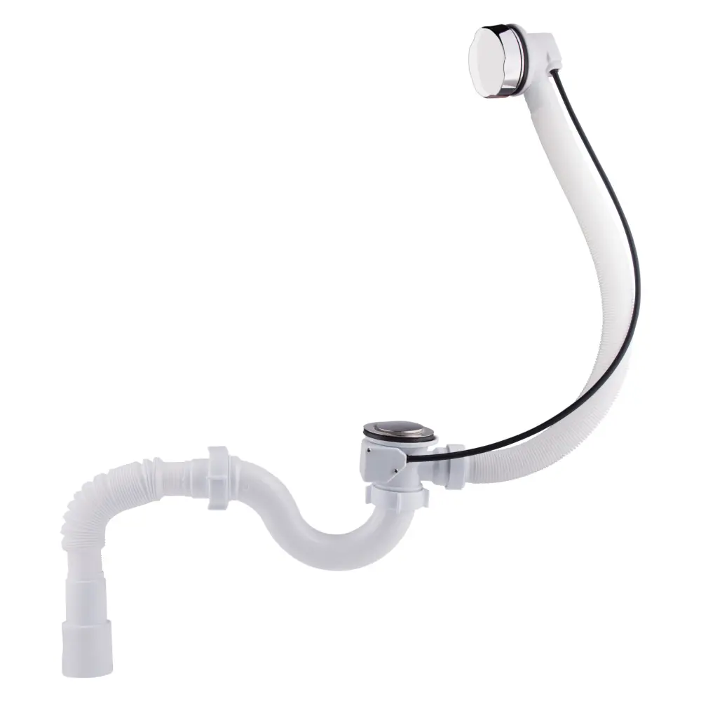 Сифон для ванни з переливом Krono Plast В1050ПА виконаний з пластику в класичному білому кольорі, має гладку внутрішню поверхню, що не тільки робить його поцінним, але й перешкоджає накопиченню бруду на стінках. Виріб не зазнає впливу корозії, не дає каналізації засмічуватися. Для закриття / відкриття зливного отвору досить повернути важіль в необхідне положення, не опускаючи руки в воду. Гофровані труби дають можливість змінювати їх довжину і кут під час установки.