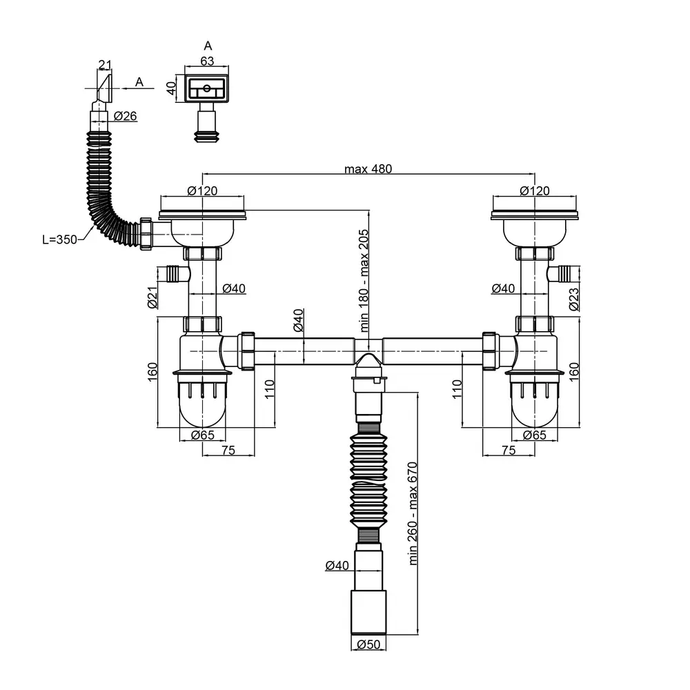 Сифон, Перелив, Випуск, Гофрована труба, Перехідна труба