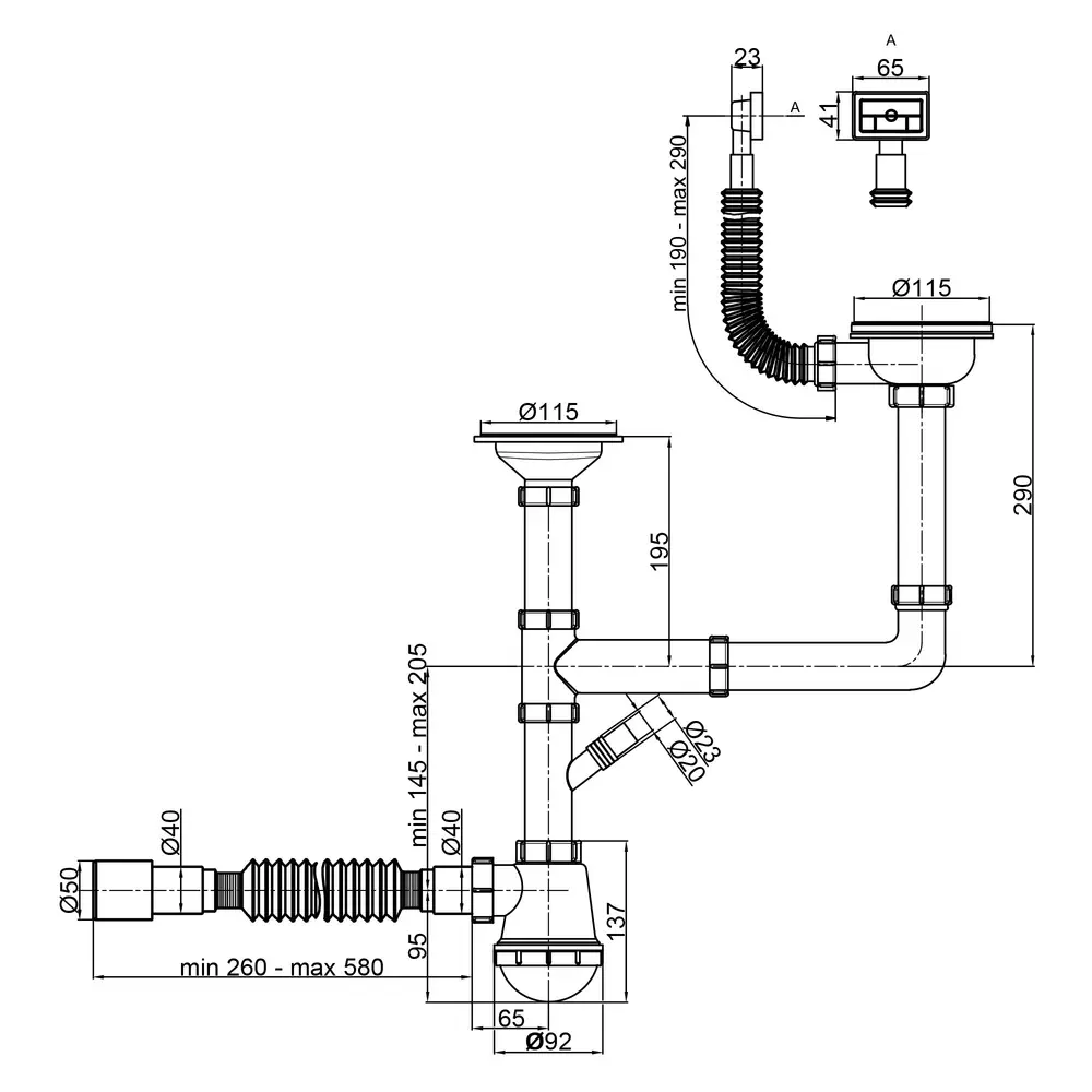 Сифон, Перелив, Випуск, Гофрована труба, Перехідна труба