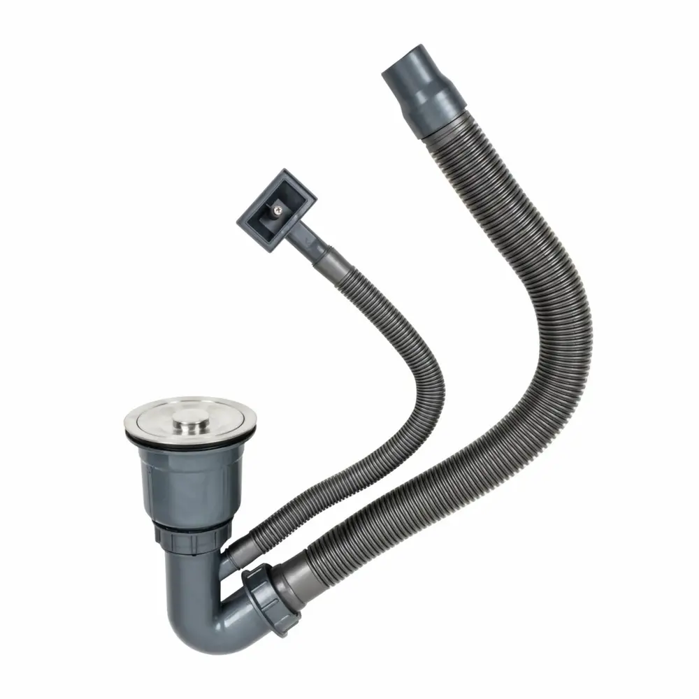 - Металева горловина з SUS 304: Використання високоякісної сталі гарантує стійкість до корозії та забезпечує довгий термін служби сифона.
