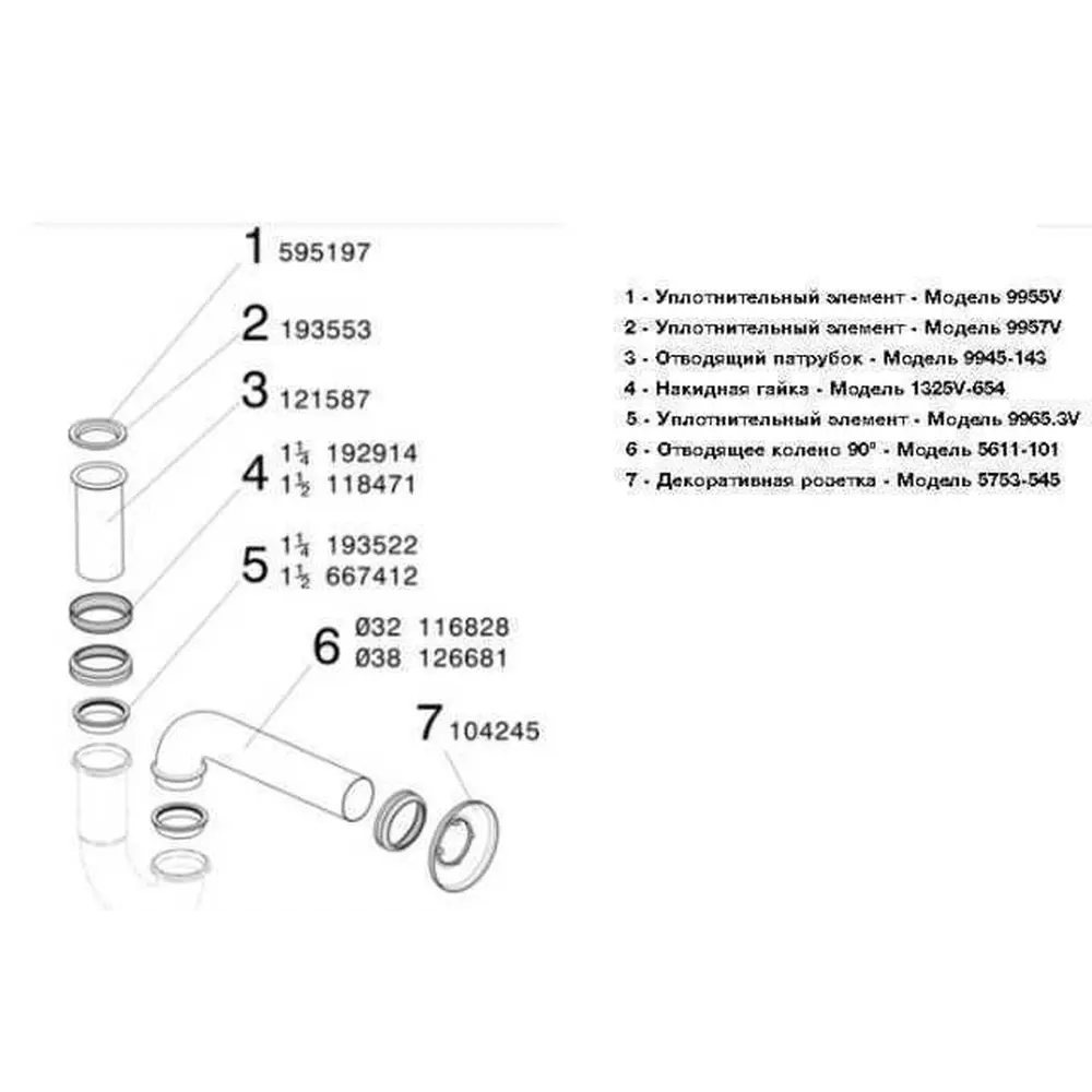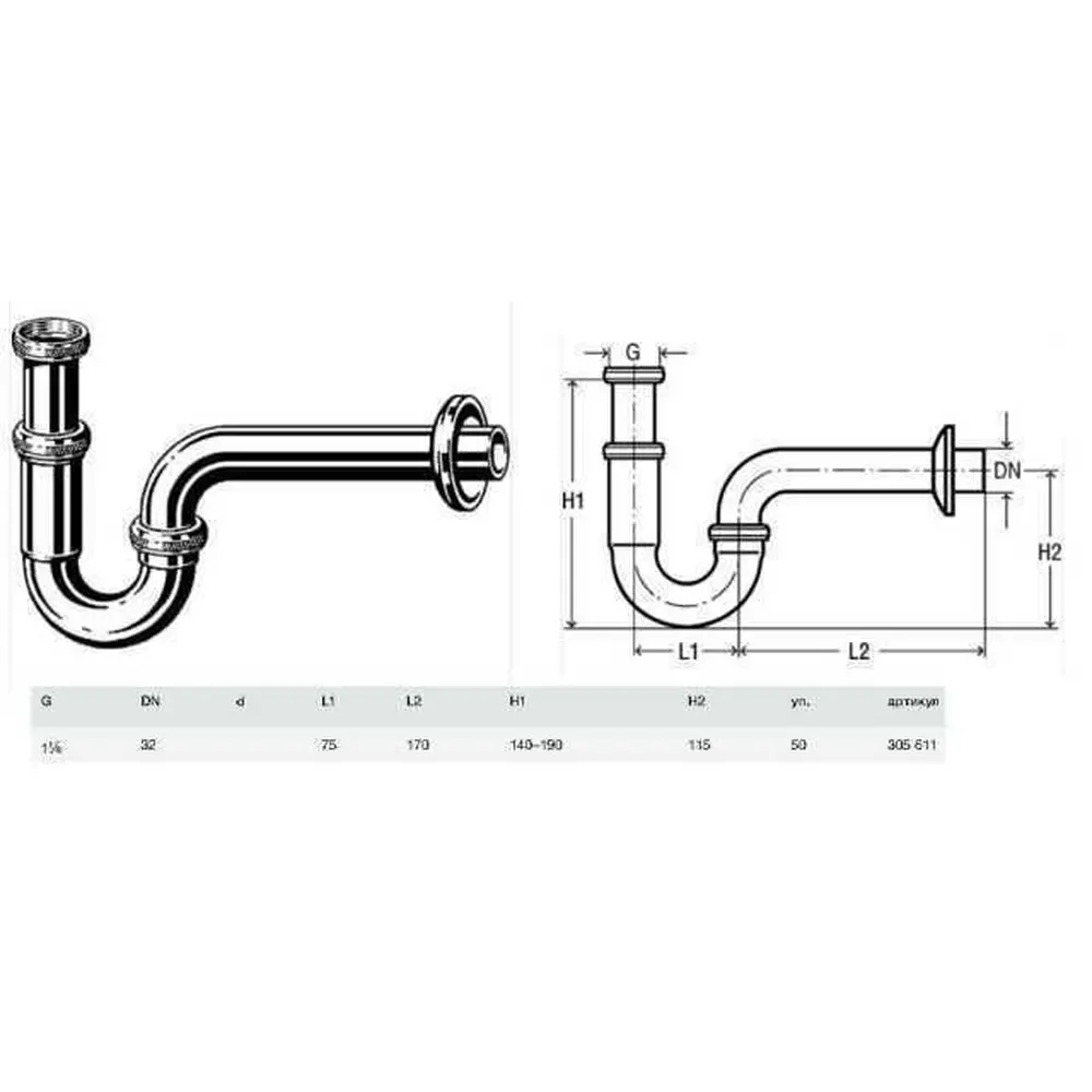 305611 Сифон хромований трубний б / г, 1 1/4 "х1 1/4" VIEGA
