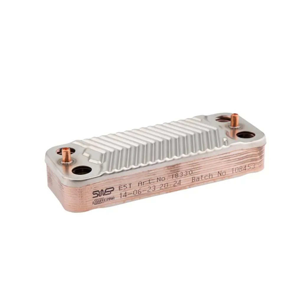 Теплообмінник пластинчастий Swep забезпечує обмін теплом між двома середовищами. Відбувається це за рахунок передачі енергії від гарячої рідини, що надходить із котла, до рідини, яку необхідно нагріти. У теплообміннику потоки рухаються у протилежному напрямку, при цьому вихідний отвір одного потоку знаходиться поряд із вхідним отвором іншого. Завдяки цьому не відбувається різкого перепаду температур, що продовжує термін служби пластинчастого теплообмінника та опалювального котла.