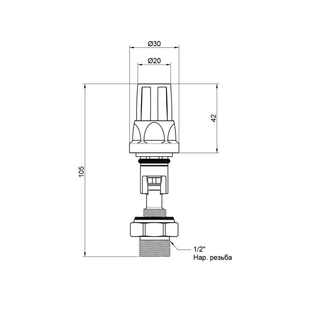 Терморегулюючий механізм вентиля ICMA Арт. 175. Виготовляється з латуні з нікельованим покриттям.